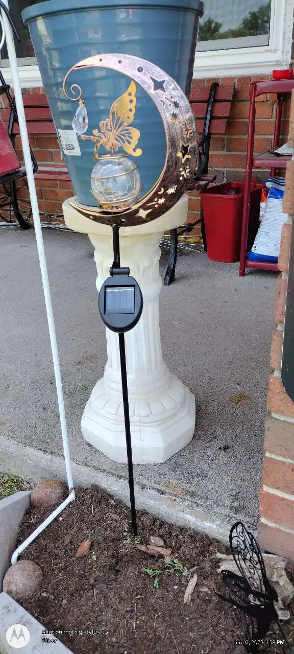 Add beauty and charm to your walkways, paths, gardens, patio and more with this distinct and unique solar powered moon art decoration.
